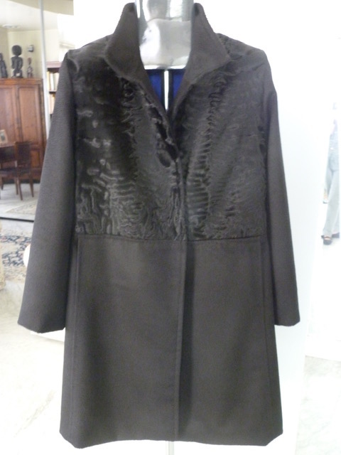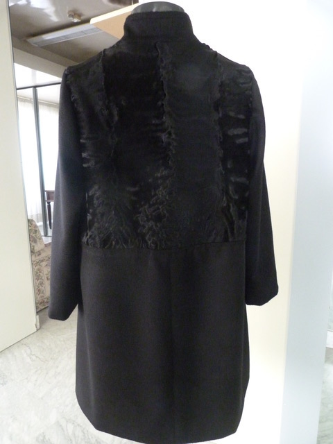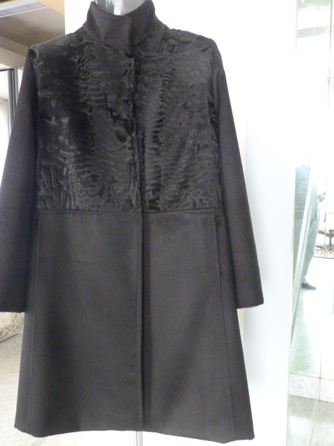 Cappottino di breitschwanz nero e tessuto 100% cachemire. Lunghezza cm. 93. Taglia M.