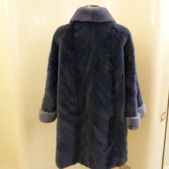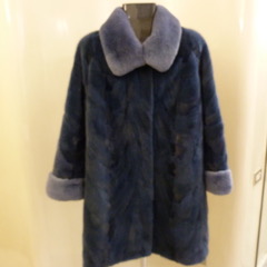 Giaccone patchwork di visone blue con collo Rex in tinta