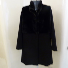 Cappottino di puro cachemire con parte alta del davanti e collo di visone nero.
